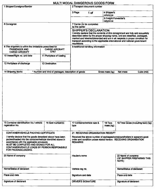 AMSA 250 form .................Multimodal D G form Substance class List codes Packing Separation Segregation